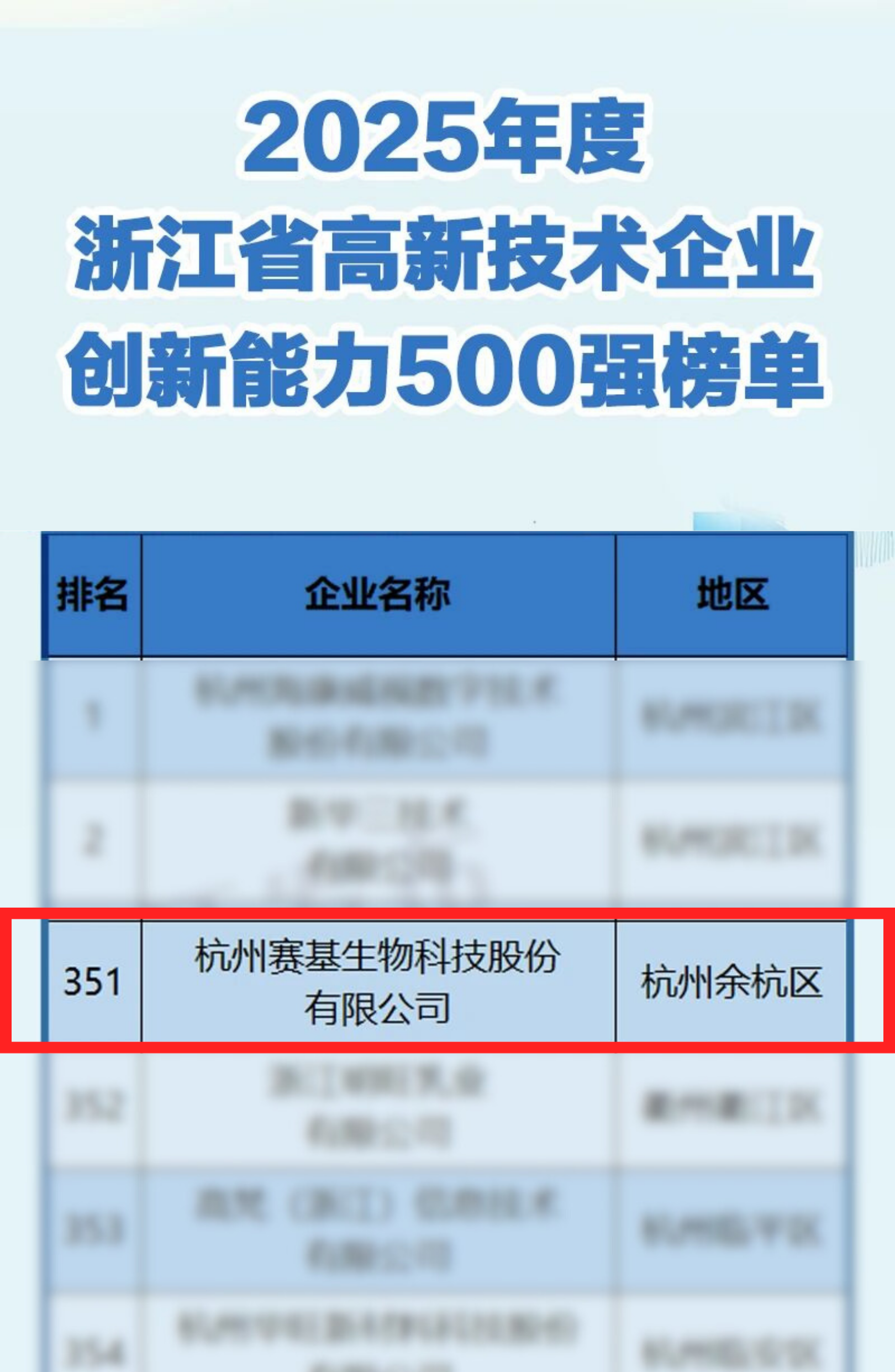 2026年1月28日,2025年度浙江省高新技术企业创新能力500强榜单正式发布!赛基生物凭借在流式检测领域持续的技术创新、扎实的研发实力与显著的产业贡献,成功入选该榜单。